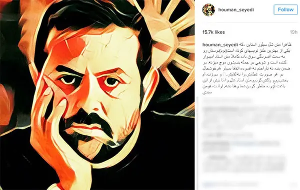 رکنا: هومن سیدی بازیگر و کارگردان جوان کشورمان پست قبلی خود را در اینستاگرام خود حذف کرد و این متن و عکس را منتشر کرد و در باره حذف پست قبلی خود نوشت: