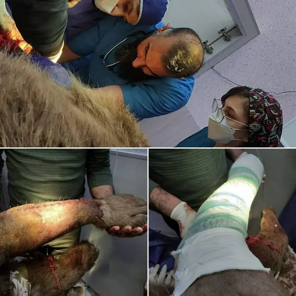 درمان این خرس قهوهای توسط دکتر قهرمانی و تیم کلینیک دامپزشکی نبض انجام شد و اکنون حال این حیوان خوب گزارش شده است.