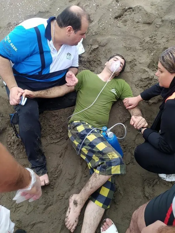 رکنا:جوانی که در ساحل امیربکنده جنب ساحل مروارید خزر غرق شده بود نجات پیدا کرد.