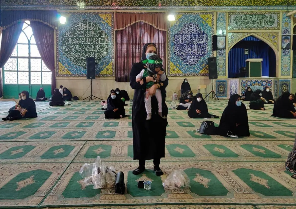 امروز نگاهها خیره به گهوارههای خالی است و نوای علی لا لا علی لا لا و لبیک یا حسین ذکر مجلس شده بود، مادران با صدای مرثیهخوانی، جگرگوشههایشان را که سربندی با نام ائمه بر پیشانی دارند را روی دست گرفته و آرام آرام تکان میدهند.