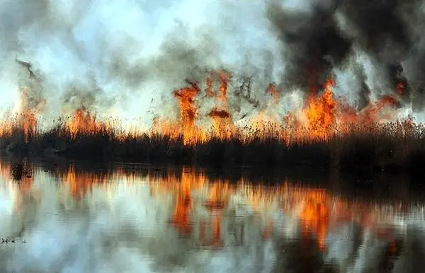 بعد از ظهر دیروز ۱۲ هکتار از نیزارهای حاشیه تالاب انزلی در آتش سوخت .