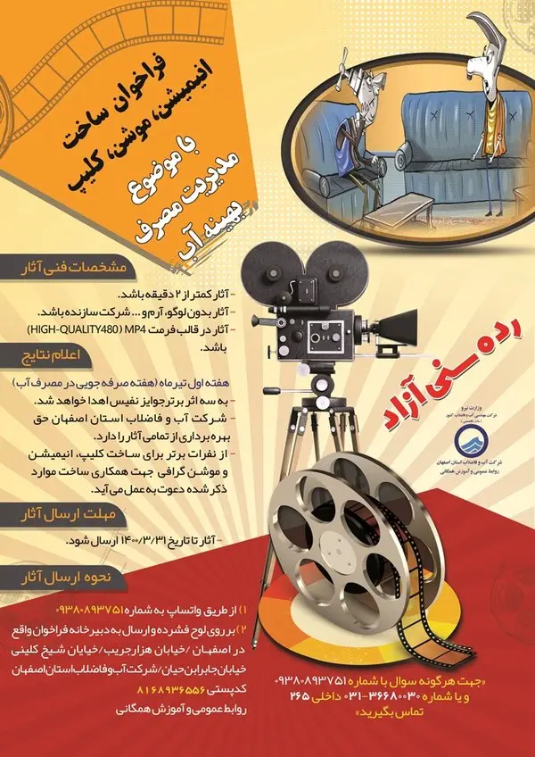 این فراخوان را روابط عمومی شرکت آب و فاضلاب استان اصفهان، خردادماه امسال با هدف شناسایی هنرمندان علاقه مند به موضوع مدیریت مصرف آب منتشر کرده بود.