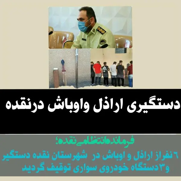 فرمانده انتظامی شهرستان نقده اذعان داشت: ماموران انتظامی نقده با انجام اقدامات پلیسی و با اشرافیت اطلاعاتی پس از هماهنگی قضایی، ۶ نفر از اراذل و اوباش مورد نظر را شناسایی و طی یک عملیات غافلگیرانه آنها را دستگیرو۳دستگاه خودروی سواری را توقیف کردند.