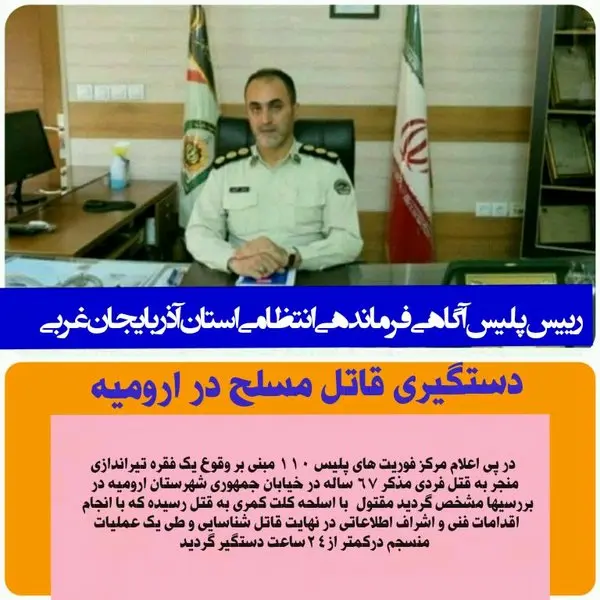 رئیس پلیس آگاهی انتظامی آذربایجانغربی :
