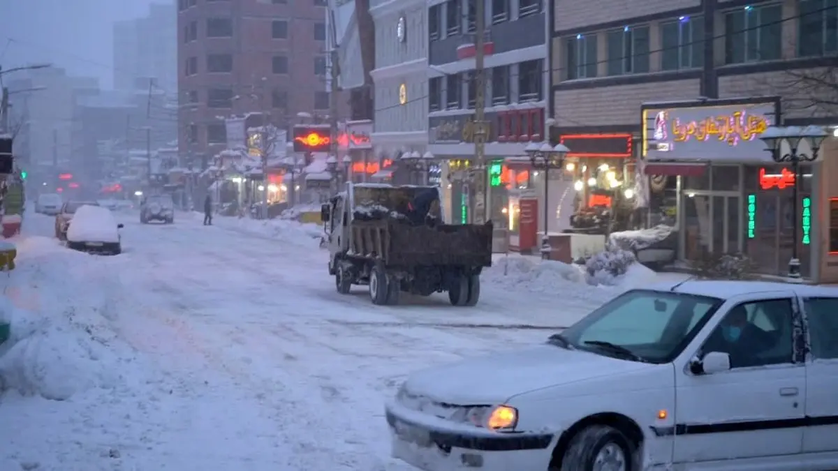 بارش برف سنگین و برف روبی معابر شهری در سرعین+عکس