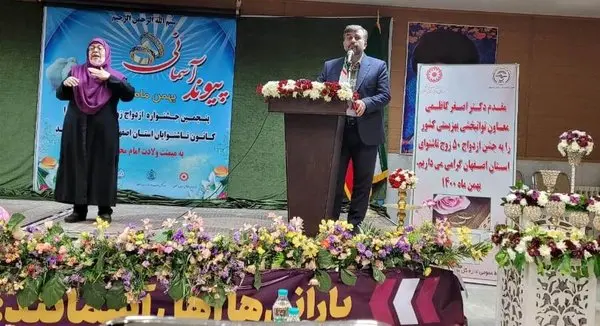 به گزارش رکنا از اصفهان، روز پنجشنبه ۱۴ بهمن جشن ازدواج ۵۰ زوج ناشنوای اصفهانی با مشارکت اداره اوقاف و امور خیریه شهرستان اصفهان و با حضور دکتر اصغر کاظمی معاون توانبخشی سازمان بهزیستی کشور، دکتر ولی الله نصر مدیر بهزیستی استان اصفهان، سید کمال صدیقی سرپرست معاونت توانبخشی بهزیستی استان، جمعی از مسئولین و خانوادههای این زوجها با شور و نشاطی وصف ناشدنی در سالن اجتماعات مقبره علامه مجلسی شهر اصفهان برگزار شد.