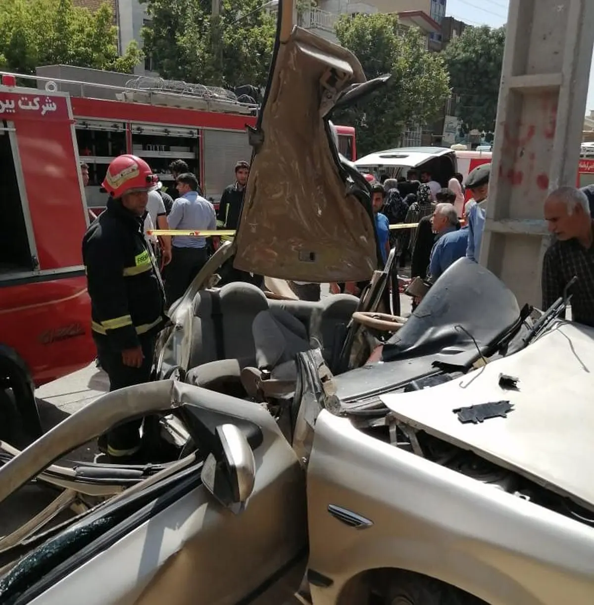 فیلم نجات جان راننده سمند توسط آتش نشانان کرمانشاهی