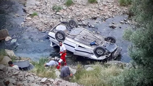 سقوط یک دستگاه خودرو پژو پارس به دره