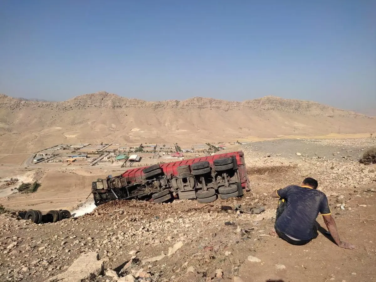 عزای راننده تریلی بر پیکر خودروی واژگون در ایذه