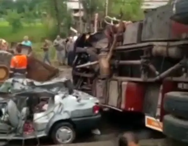 حوادث رکنا :واژگونی کامیون بر روی خودروی سواری، یک کشته برجای گذاشت.