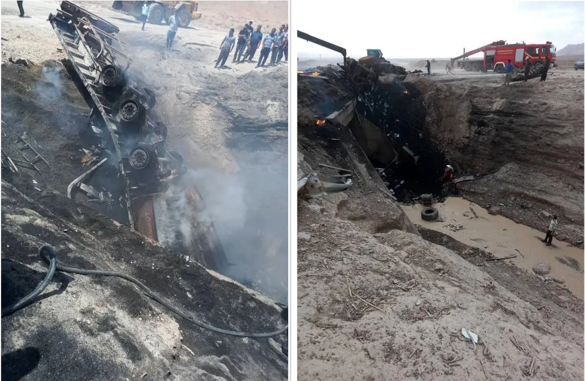 سقوط مرگبار تریلی در سرخه منجر به حریق شد / پیکر راننده پیدا نشد