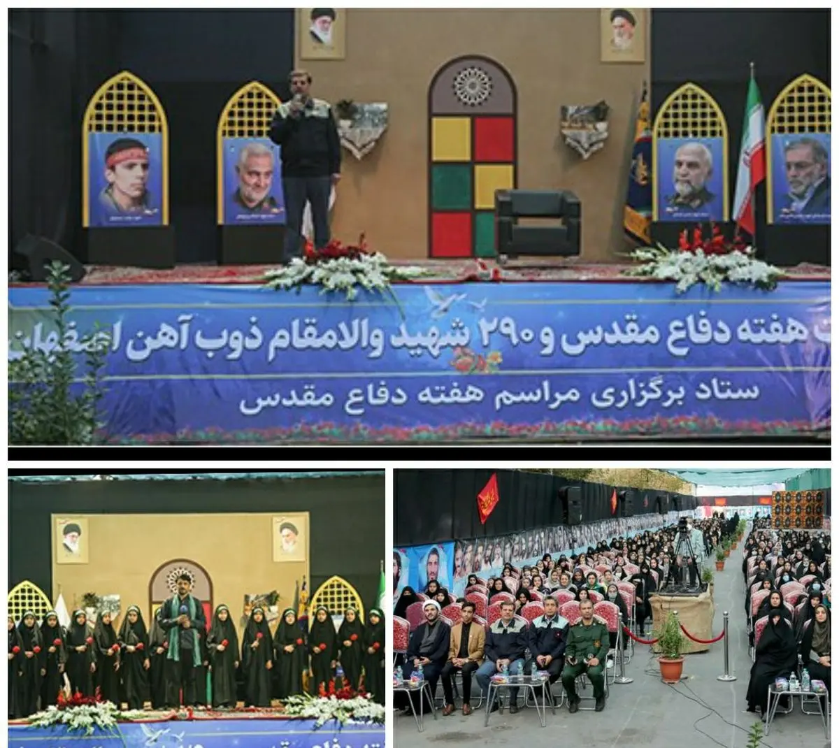 وی افزود: ذوب آهن اصفهان نیز یک خانواده بزرگ است که در دوران دفاع مقدس ضمن حفظ جبهه تولید، در پشتیبانی از جبهه های حق علیه باطل نیز نقش آفرین بود و تعداد ۲۹۰ شهید گلگون کفن را به انقلاب اسلامی ایران تقدیم نمود.