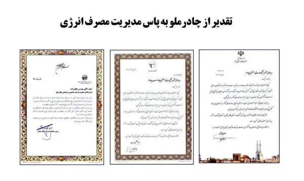 همچنین تصریح شده است، تلاش مسئولانه و اخلاق مدارانه مجموعه مدیریتی آن شرکت در راستای نظام بخشیدن و تسری فرهنگ ارزشمند بهینه سازی مصرف انرژی، قابل تحسین است./