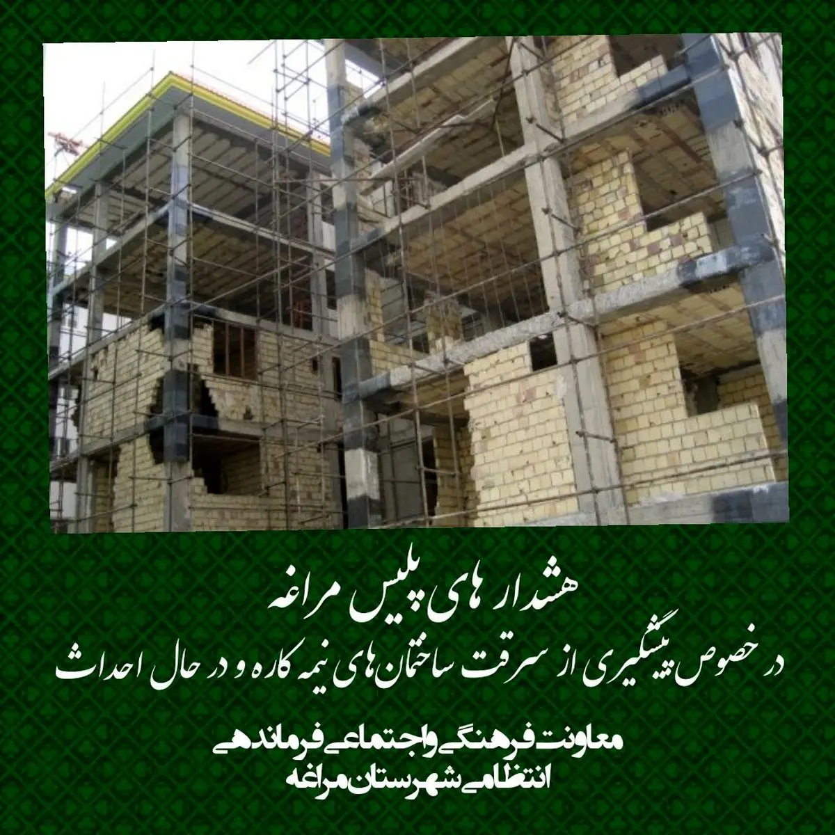 هشدار های پلیس مراغه در خصوص پیشگیری از سرقت ساختمانهای نیمه کاره و در حال احداث