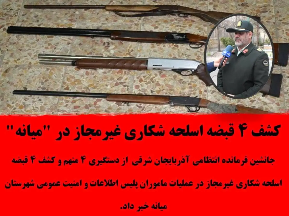 کشف ۴ قبضه اسلحه شکاری غیر مجاز در میانه