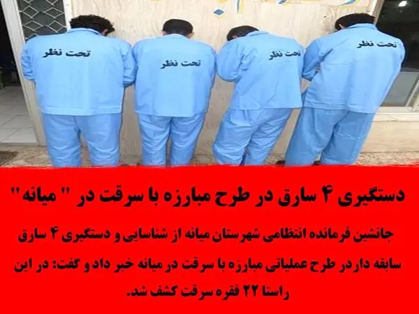 دستگیری 4 سارق در طرح مبارزه با سرقت در " میانه"
