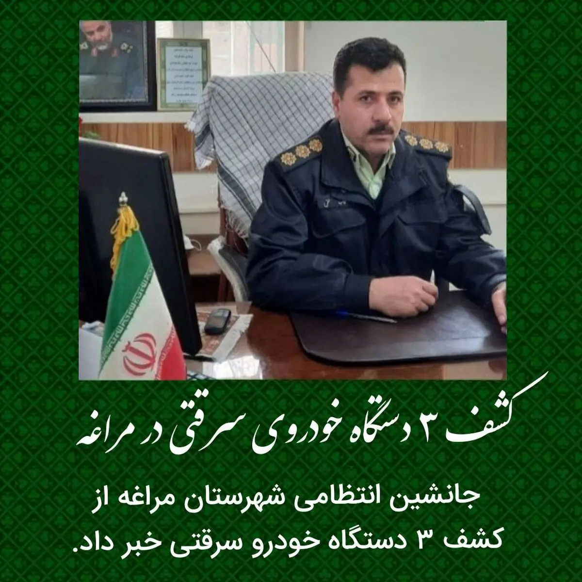 رکنا:جانشین انتظامی شهرستان مراغه از کشف ۳ دستگاه خودرو سرقتی خبر داد.