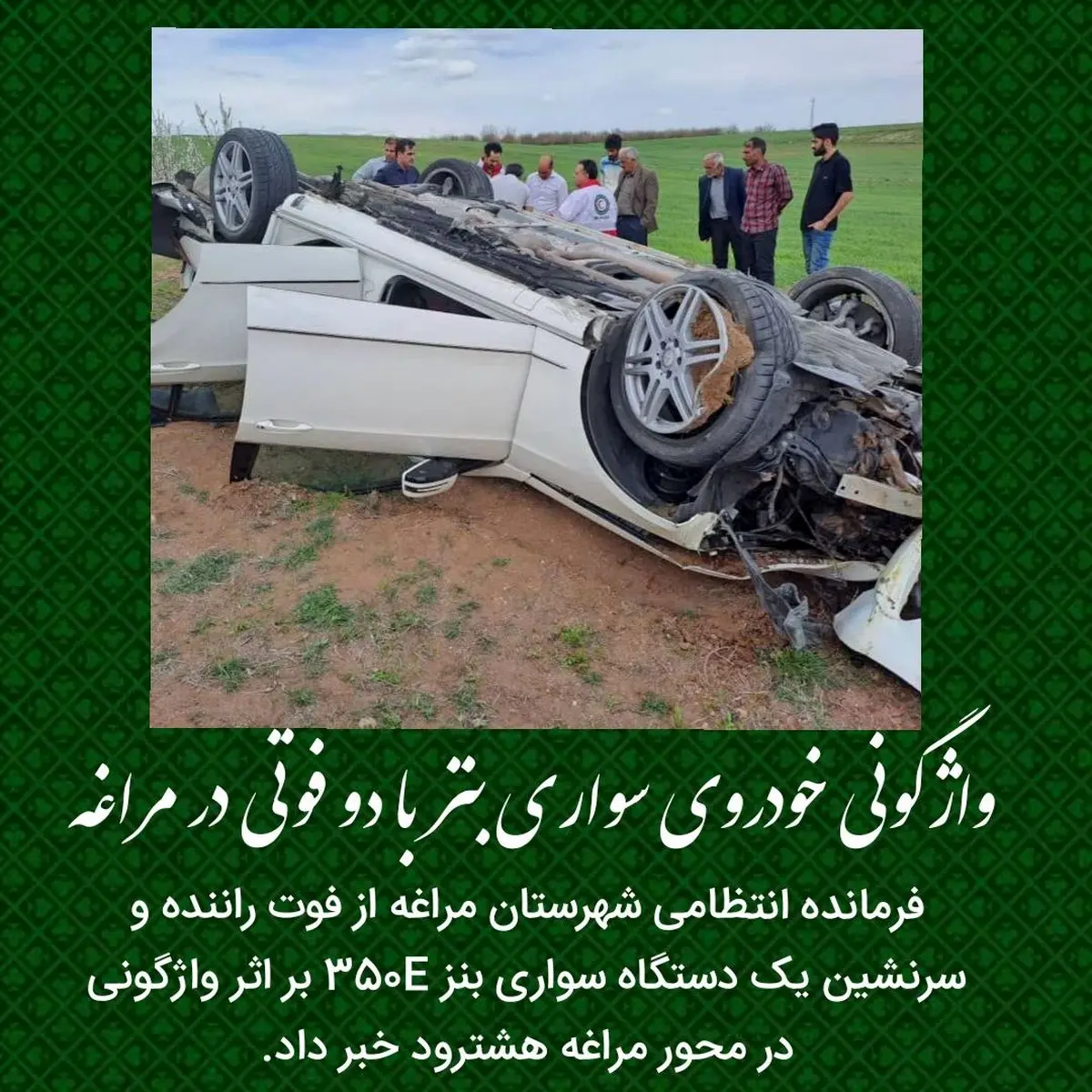 رکنا: فرمانده انتظامی شهرستان مراغه از فوت راننده و سرنشین یک دستگاه سواری بنز 350E بر اثر واژگونی در محور مراغه هشترود خبر داد.
