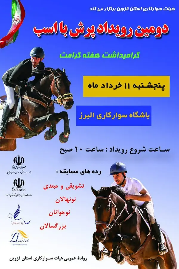 رکنا: سرپرست هیئت سوارکاری استان قزوین گفت: دومین رویداد پرش با اسب فردا پنجشنبه در باشگاه سوارکاری شهرستان البرز برگزار می شود.