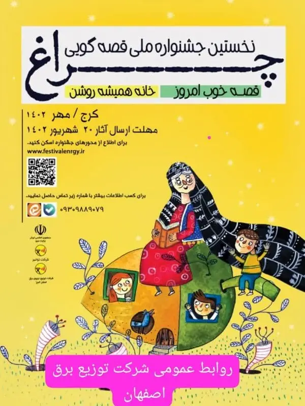 به گزارش رکنا از اصفهان؛ روابط عمومی شرکت توزیع برق اصفهان پوستر نخستین جشنواره ملی قصه گویی چراغ را منتشر کرد. این جشنواره با شعار «قصه خوب امروز، خانه همیشه روشن» و در راستای فرهنگ سازی مدیریت بهینه مصرف برق، مهرماه امسال در کرج برگزار می شود.
