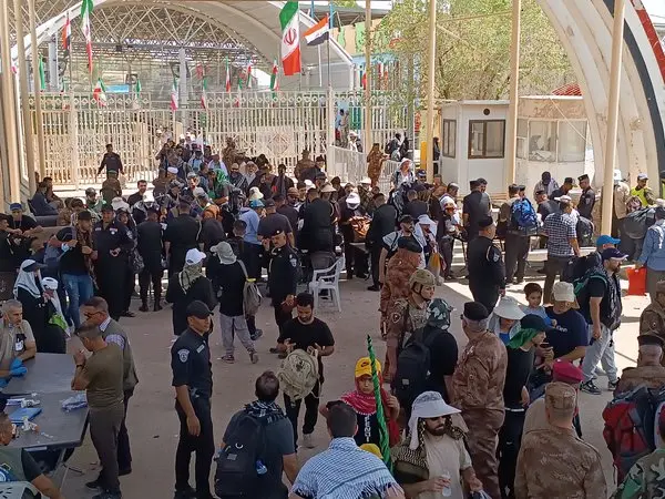 اتوبوس ها در مرز منذریه عراق، زائران را به شهرهای زیارتی منتقل میکنند.