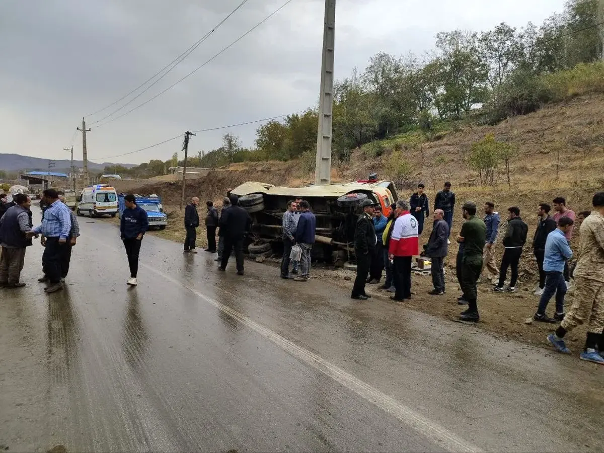 واژگونی مینی بوس در محور عجب شیر با یک کشته و ۱۶ مصدوم