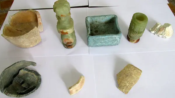 سرهنگ محمدرضایی تصریح کرد: کارشناسان میراث فرهنگی قدمت این اشیا که شامل انواع ظروف از جنس نقره، سنگ مرمر، مجسمه مرمری، دستبند نقره و یک سری اشیاء دیگر بودند را مربوط به ۵ هزار سال قبل تخمین زدند.