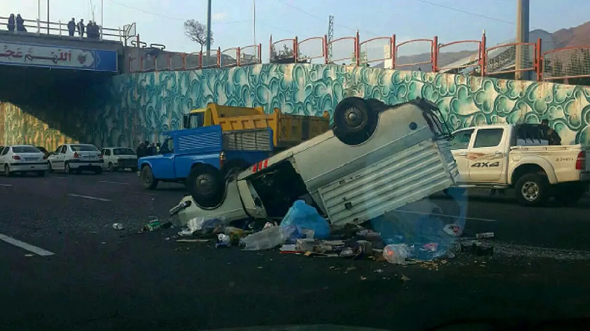 واژگونی پیکان وانت در زیر گذر میدان شهید فهمیده
