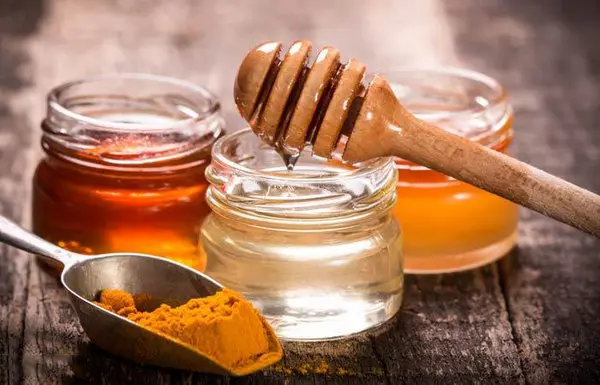 ۲. در کاسهای کوچک و یا شیشهای، زردچوبه، عسل، سپس سرکه سیب، شیر یا ماست را مخلوط نمایید. به خوبی مخلوط را ترکیب کنید و مراقب باشید که مخلوط چسبندگی خود را از دست ندهد. احتیاط، زیادی رقیق نشود.