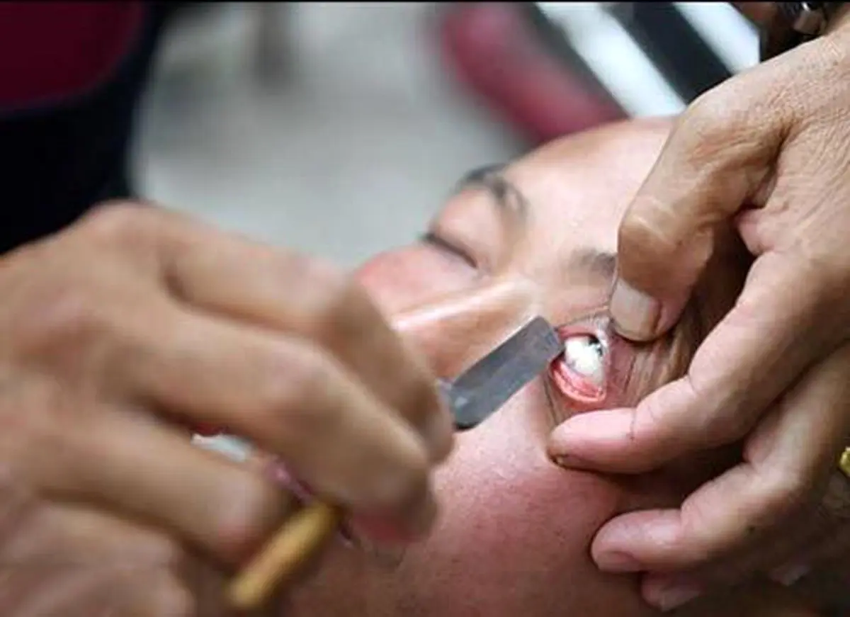 این روش درمان سنتی که با یک تیغ بسیار تیز انجام میشود, “جرم گیری چشم” یا “تراشیدن تخم چشم” اسم دارد. دراین روش که ریشه درطب سنتی چینی دارد, آرایشگر تیغ برندهای را در داخل چشمان مشتریانش می کشد تا آن ها را تمیز کند!