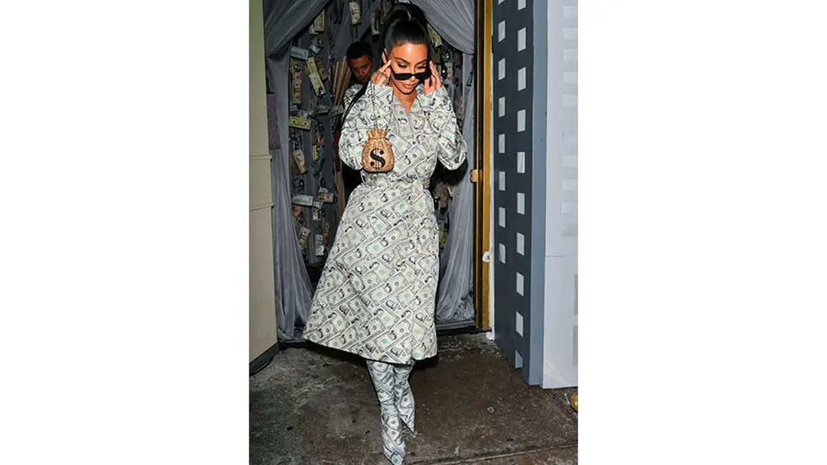 کیم کارداشیان یکی از سلبریتی هایی است که زیباترین لباس ها را همیشه تن می کند و این بار کیم کارداشیان با لباس و کفش هایی از دلار و یک کیف طلا از برند «Judith Leiber» ظاهر شد.