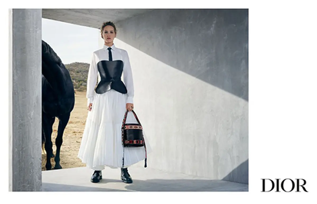 این کمپین تبلیغاتی در روستایی در کنار یک اسب فیلمبرداری شده است. جنیفر لارنس در این تبلیغ لباس های متفاوتی به تن کرد از جمله دامن مشکی توری به همراه کتی مشکی و کرواتی سفید که ظاهر متفاوتی به او بخشید.