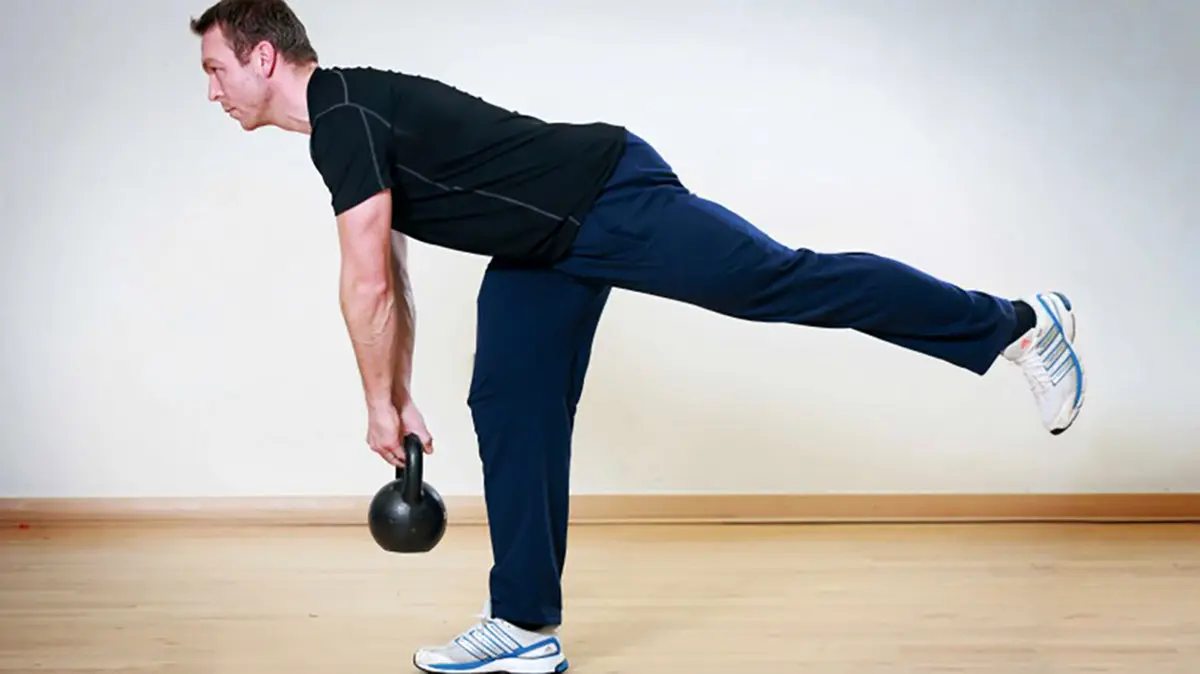 حرکت ددلیفت تک پا یکی دیگر از تمرینات تعادلی است. این حرکت به ثبات و قدرت پا نیاز دارد. یک جفت دمبل متوسط تا سبک بردارید.