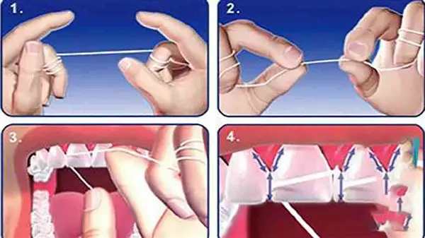 این وسیله نخ دندان را نگه میدارد تا بتوانید دندانها را با یک دست نخ بکشید.