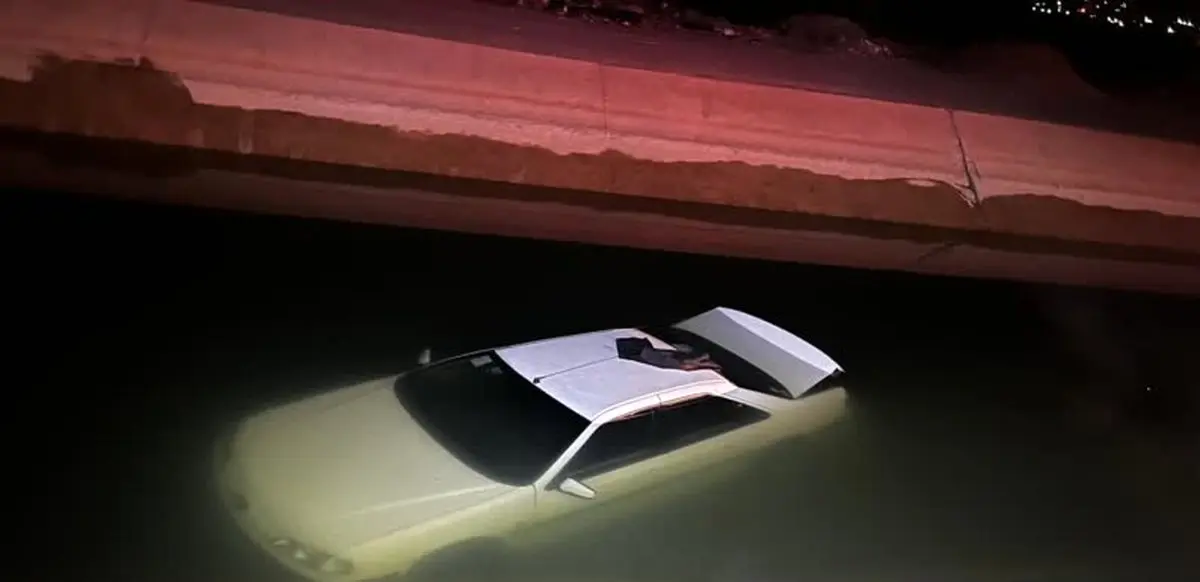 سقوط پژو پارس به کانال آب/ راننده خودش را نجات داد!