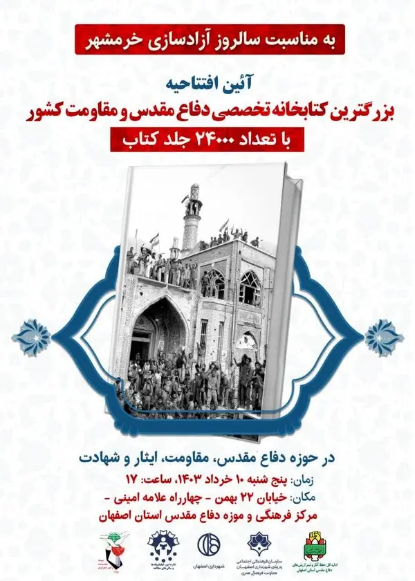 رکنا: رئیس اداره کتابخانههای شهرداری اصفهان از افتتاح بزرگترین کتابخانه تخصصی دفاع مقدس و مقاومت کشور در روز 10 خردادماه در اصفهان خبر داد.