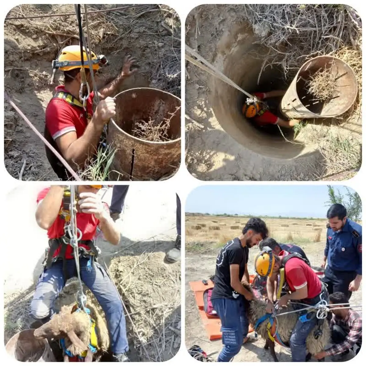 رکنا: گوسفندی که به داخل چاه ۲۰ متری سقوط کرده بود با تلاش آتش نشانان نجات یافت.