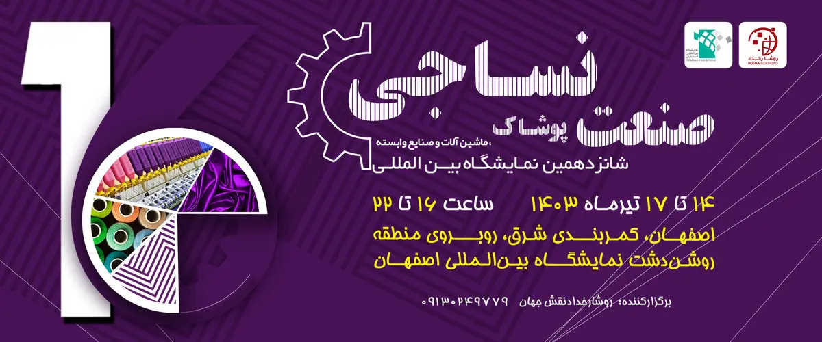 رکنا: اصفهان در تاریخ 14 تا 17 تیرماه جاری میزبان شانزدهمین نمایشگاه بینالمللی صنعت نساجی، پوشاک و ماشین آلات است.