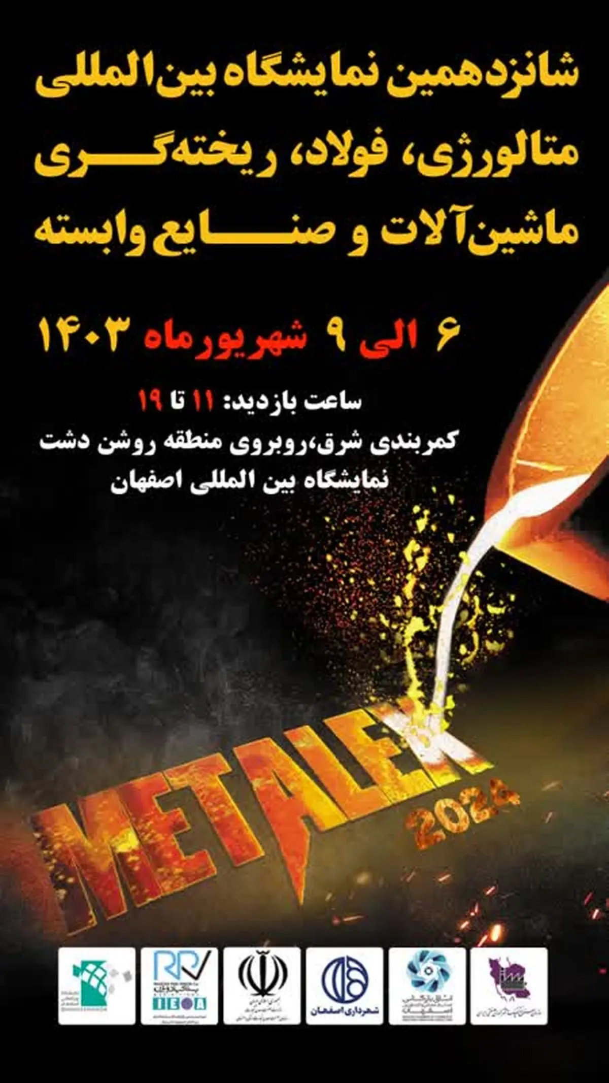 رکنا: شانزدهمین نمایشگاه بین المللی متالورژی، فولاد، ریخته گری، ماشین آلات و صنایع وابسته اصفهان(متالکس ۲۰۲۴) از ۶ تا ۹ شهریور ماه ۱۴۰۳ در محل دائمی نمایشگاه های بین المللی استان اصفهان برگزار خواهد شد.
