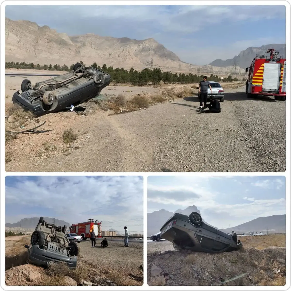 رکنا: خودرو پژوی روآ در کمربندی خمینی شهر به نجف آباد واژگون شد.