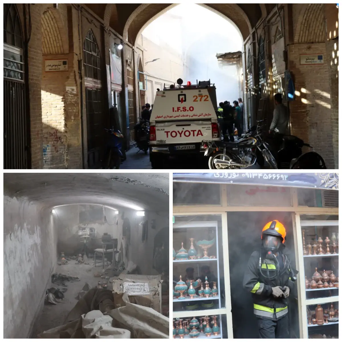کارگاه صنایع دستی در آتش سوخت/بازار اصفهان در یک قدمی فاجعه بود!+عکس