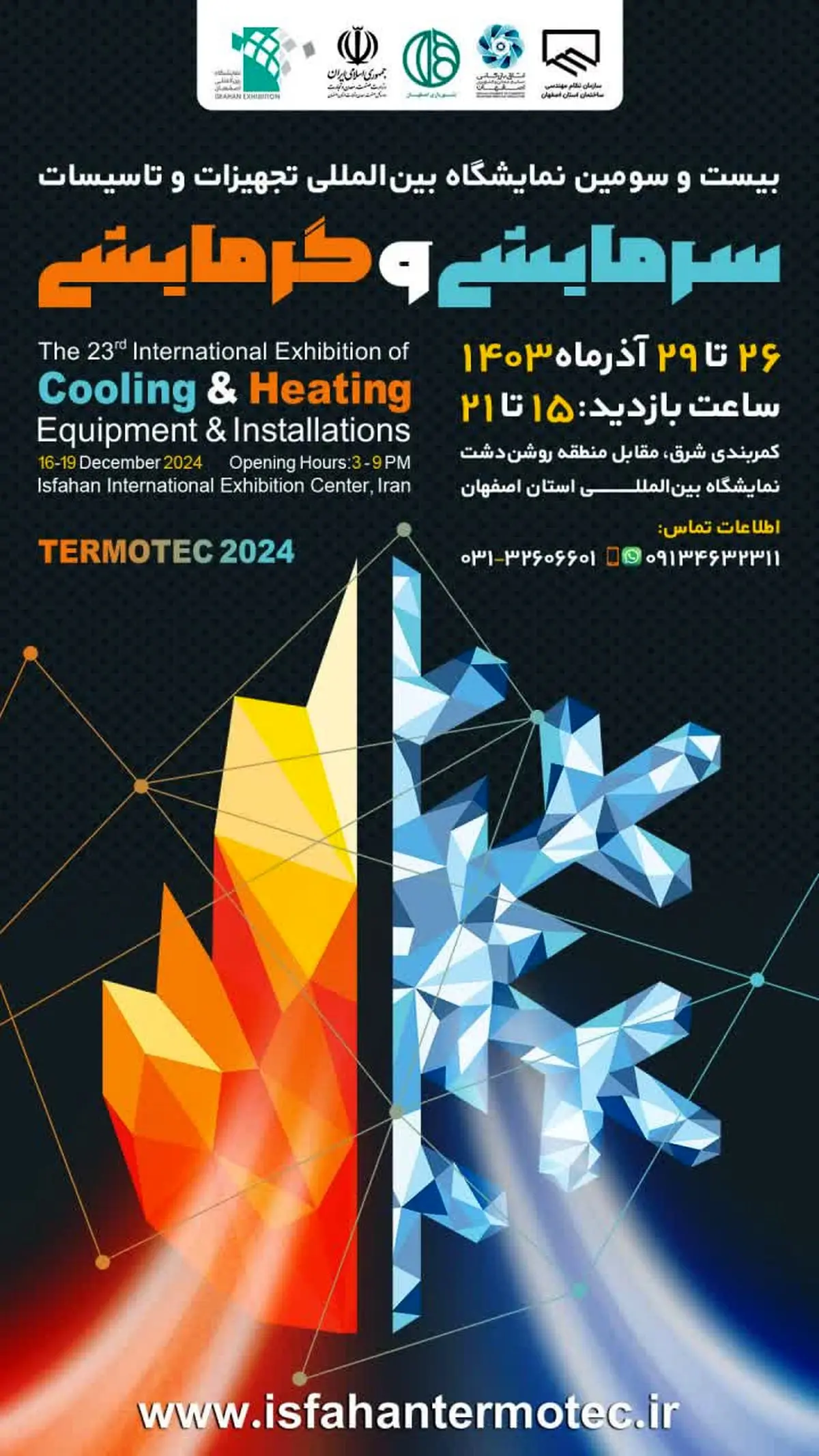 رکنا: بیست و سومین نمایشگاه بینالمللی تجهیزات و تأسیسات سرمایشی و گرمایشی از تاریخ ۲۶ تا ۲۹ آذر ماه در محل دائمی نمایشگاه بینالمللی استان اصفهان برگزار میشود.