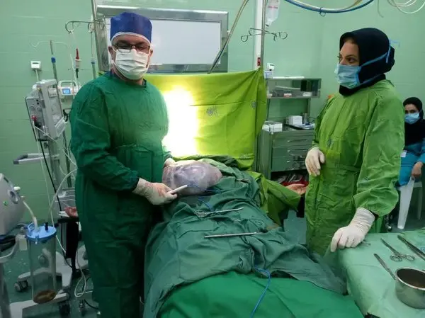 این بیمار در روزهای اخیر تحت رزکسیون تومور قرار گرفت و این توده به وزن 8کیلو 200گرم  از شکم بیمار خارج شد ودر حال حاضر با وضعیت نسبتا خوب در بخش جراحی زنان این مرکز بستری وتحت نظر می باشد.