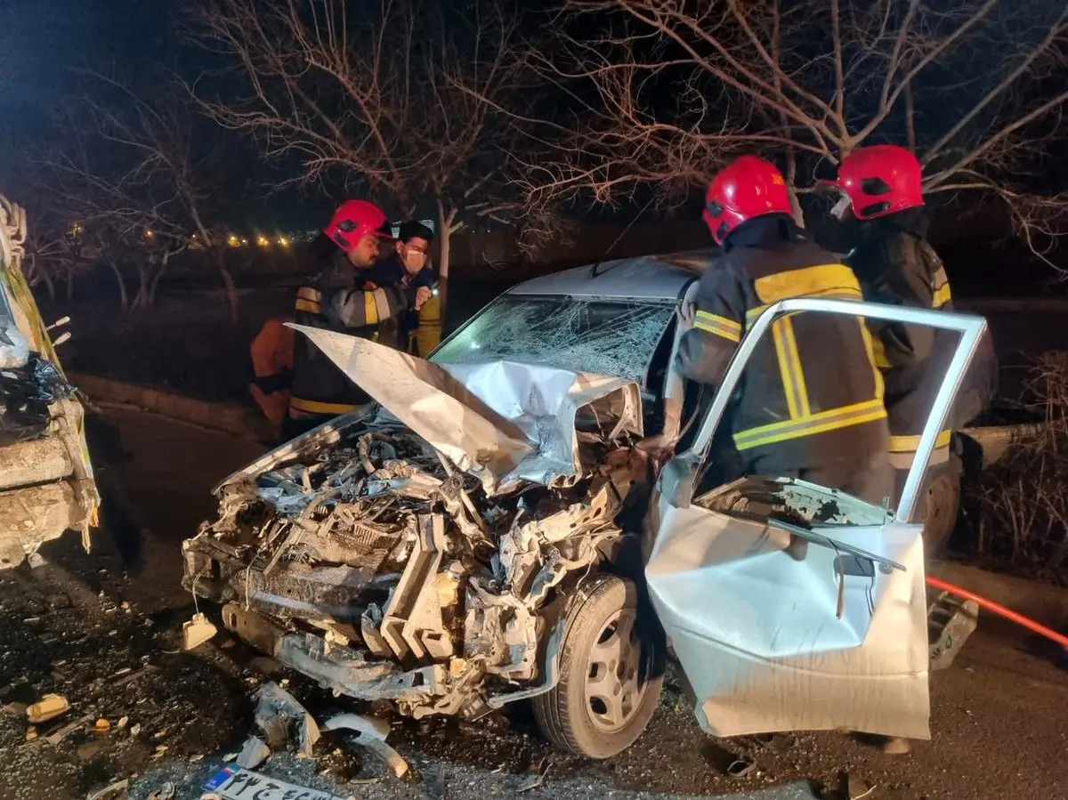 بر اثر این حادثه خودرو پراید با خودرو حمل زباله برخورد کرده بود که باعث مصدومیت سرنشینان و محبوسی راننده درون خودرو شده بود.
