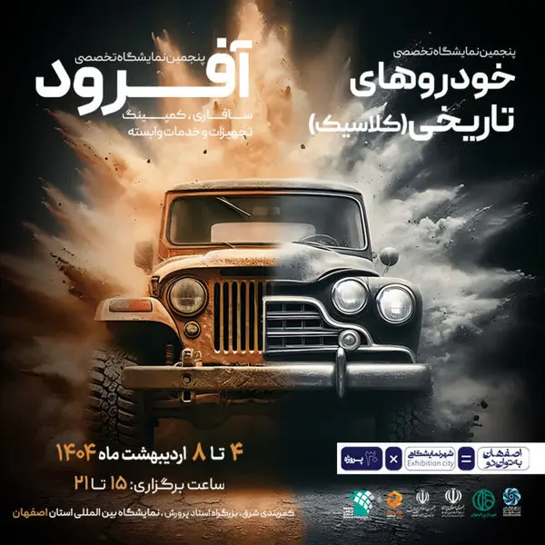 رکنا: نمایشگاه خودروهای تاریخی- کلاسیک، آفرود، کمپینگ و تجهیزات و خدمات وابسته تاریخ 4 تا 8 اردیبهشت ماه 1404 برگزار میشود.