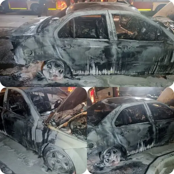 خودرو دنا طعمه حریق شدو چیزی از آن نماند!+فیلم