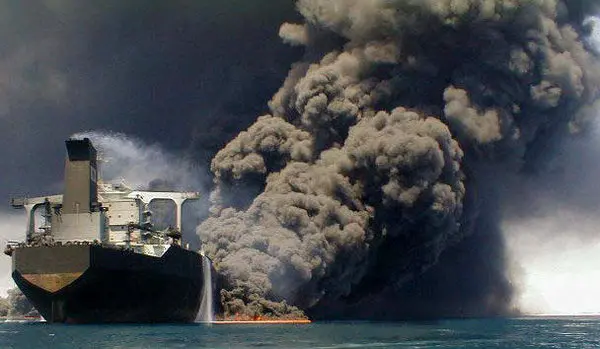 روز شنبه در برخورد نفتکش ایرانی با یک کشتی باری چینی در خاک چین، نفتکش ایرانی دچار حریق شد و تا لحظه ارسال این خبر که مشخص شده جسد یکی از مفقودین پیدا شده از وضعیت ۳۱ خدمه دیگر اطلاعی در دست نیست. محموله نفتکش ایرانی که متعلق به شرکت ملی نفت ایران بوده توسط شرکت هانووا توتال کره جنوبی بیمه شده بود. ۷۰ درصد بیمه پرسنل و کشتی نیز توسط بیمههای خارجی و ۳۰ درصد آن توسط بیمههای ملت و البرز انجام شده بود.برای ورود به کانال تلگرام ما کلیک کنید.