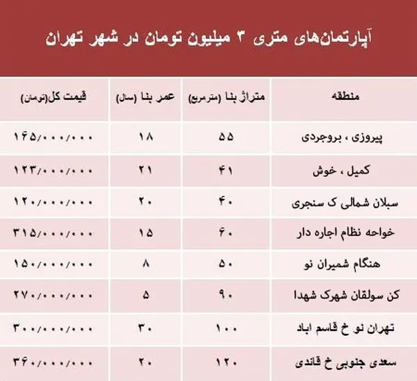کجای تهران آپارتمان متری 3 میلیون تومان بخریم؟
