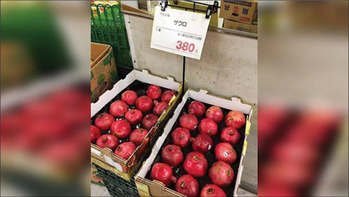 رکنا: تصاویری از انارهای چیده شده در فضای مجازی منتشر شد که زیر آن نوشته شده: «قیمت هر دانه انار در ژاپن ۳۸۰ ین حدود ۵۰ هزار تومان است.