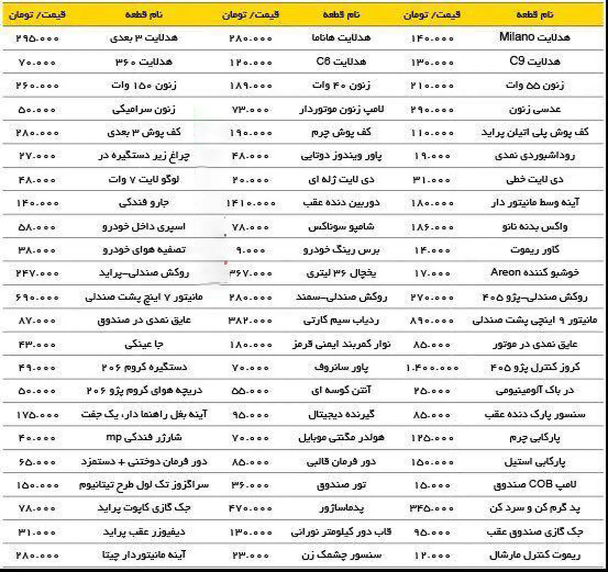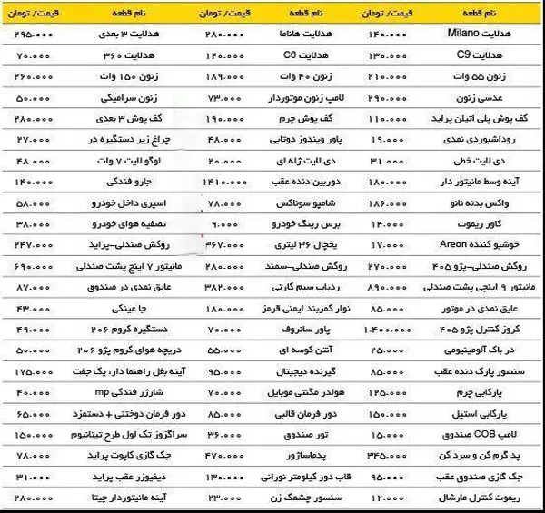 قیمت آپشن های جدید خودروهای داخلی